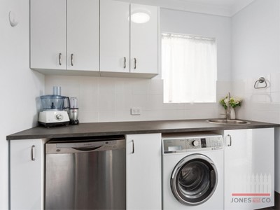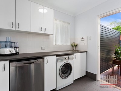 The modern kitchen includes a gas cooktop and excellent cupboard space. Flowing off the kitchen is the laundry/scullery, this space has been fully renovated offering extra storage space, dishwasher, washing machine recess and access to the rear yard.