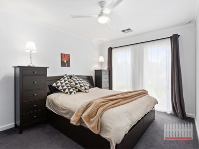 Entering the property you are welcomed into the central hub of the home, the spacious front lounge is fixed with plush carpet and ceiling fan for your comfort. The kitchen and meals area boasts jarrah flooring and overlooks the impressive outdoor entertaining area and lush garden.