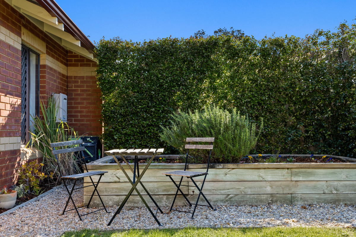 Stepping outside, the property reveals a beautifully landscaped private courtyard that truly enhances the home. Thoughtfully designed, it offers multiple areas to relax and unwind, whether it’s enjoying a quiet morning, reading a book in the afternoon sun, or hosting friends for an evening barbecue. With greenery framing the space and a layout that feels both inviting and private, the courtyard creates a tranquil escape while still being easy to maintain — the perfect balance for modern living.